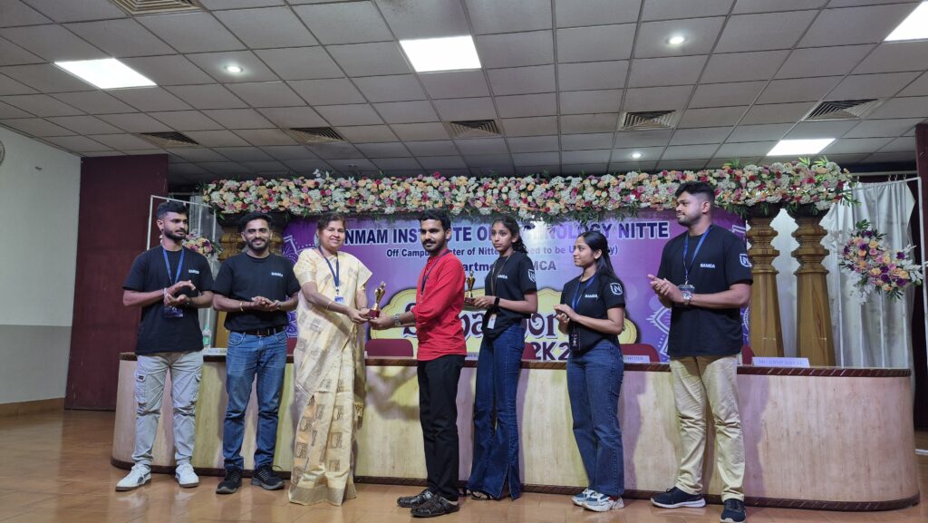 Students of II MCA delivered outstanding performances at “Semaphore 2K25”, a National-Level IT and Cultural Fest organized by the Department of MCA, NITTE (Deemed to be University), Karkala, held on 9th and 10th October 2025. First Prize in the Dance Competition was secured by Mr. Chidesh, Ms. Meghana M, Ms. Pavana, Ms. Pavithra, Ms. Raksha Shetty, Ms. Shifali K. Salian, Ms. Sushmitha, and Mr. Yashwith. In addition, Second Prize in the Quiz Competition was won by Mr. Havyas B and Mr. Yashwith, while Second Prize in the Coding Competition was achieved by Mr. Bhavish Kumar and Ms. Chaithali S, showcasing excellence across cultural and technical events.